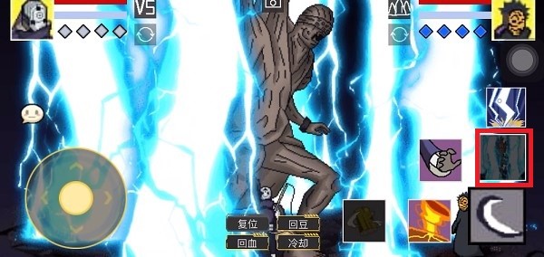 2、接着在释放大招的过程,点击其中的【复位】上方的隐藏按钮,可能会有点卡;