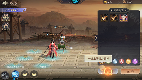 1、作为回合制游戏其玩法核心围绕着角色进行的,我们需要通过招募来收集名将;