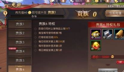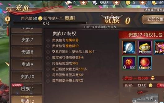 轩辕传奇手游在目前游戏中一共有vip1-vip12一共十二个等级,等级越高充值越高,不同等级的vip的特权也不同。下面就是轩辕传奇手游贵族vip对应等级的价格。