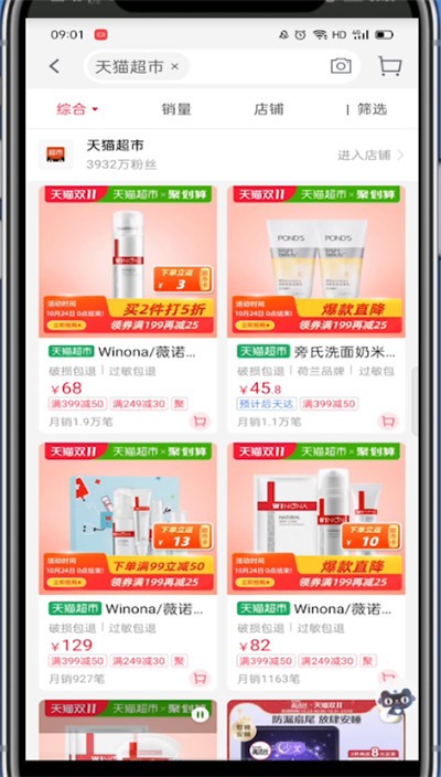 3、找到天猫超市点击进入店铺即可