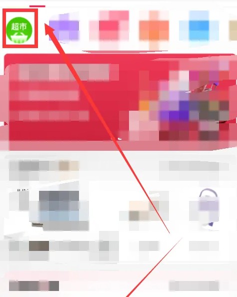 然后在主页点击右上方的天猫超市进入,如下图所示;