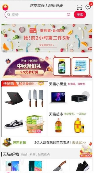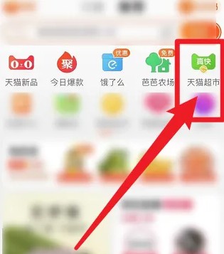 打开手机天猫app,选择底部*个图标——跳转页面,选择超市