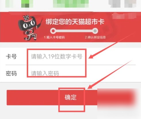 进入天猫超市页面,点击底部菜单导航栏——超市卡——绑卡