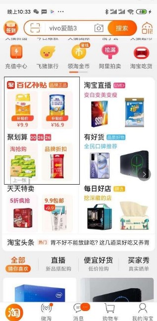 3、聚划算的入口还是在手机淘宝app的首页,我们通过手机淘宝首页的聚划算板块既可以自己进入聚划算活动会场。
