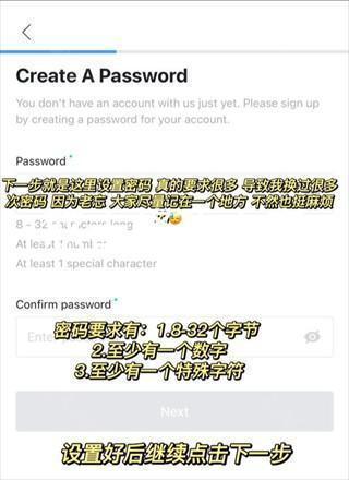 5、下一步就是这里设置密码,密码要求有:8-32个字节,至少有一个数字和特殊字符,设置好后继续点击下一步