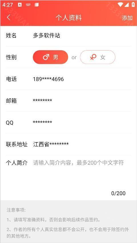 1、请填写准确资料,否则会影响后续作品签约。
