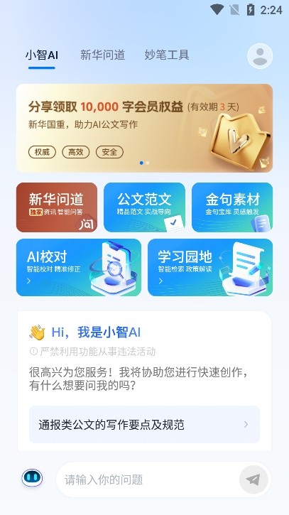 AI写作、AI续写、AI校对、AI润色和AI灵感五大功能,全方位助力公文写作。