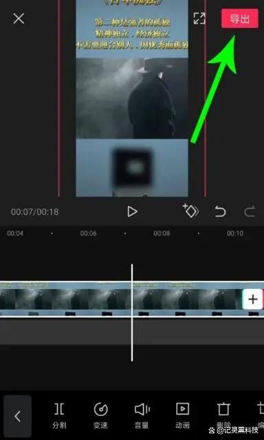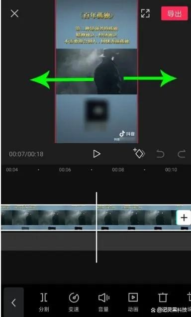 选中视频素材后,在编辑区域同时用两根手指按住视频画面,然后向两侧拖动,放大视频素材,直到抖音号水印消失。然后点击导出视频即可。