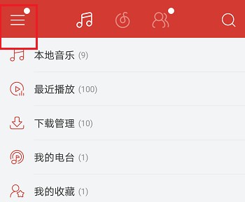 2.来到了音乐软件里面,我们点击上方的三白线,如图。